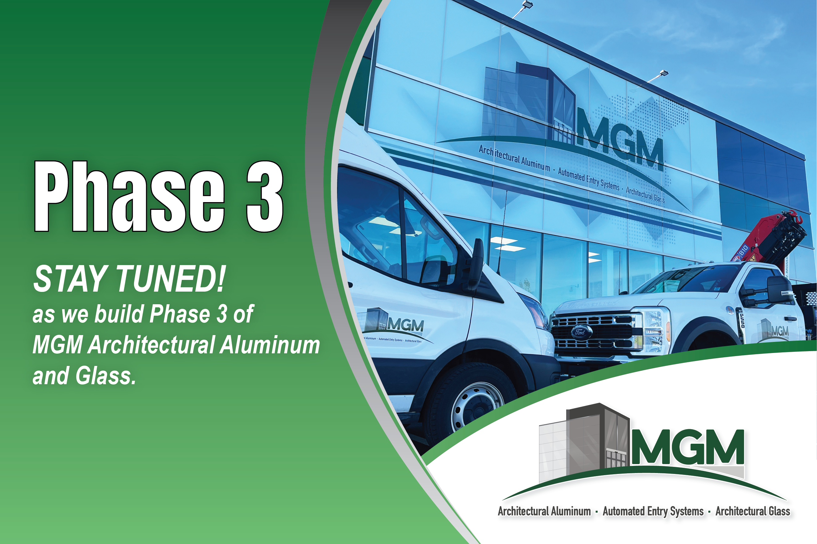 at MGM Architectural Aluminum & Glass, SERVICE is how we deal with all our customers. This why we have this facility full of every aspect to solve our customers challenges to increase their bottom line.